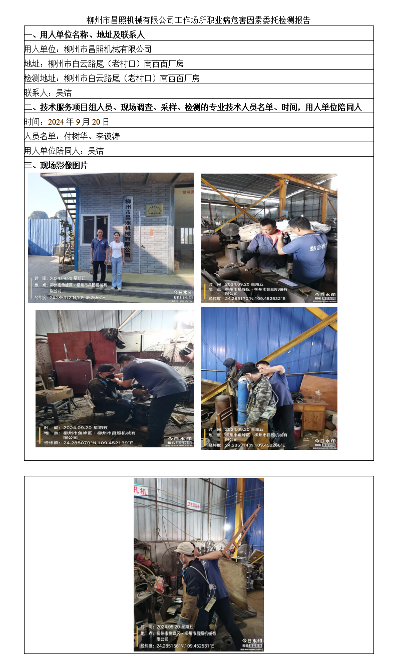 柳州市昌照機(jī)械有限公司工作場所職業(yè)病危害因素委托檢測報(bào)告