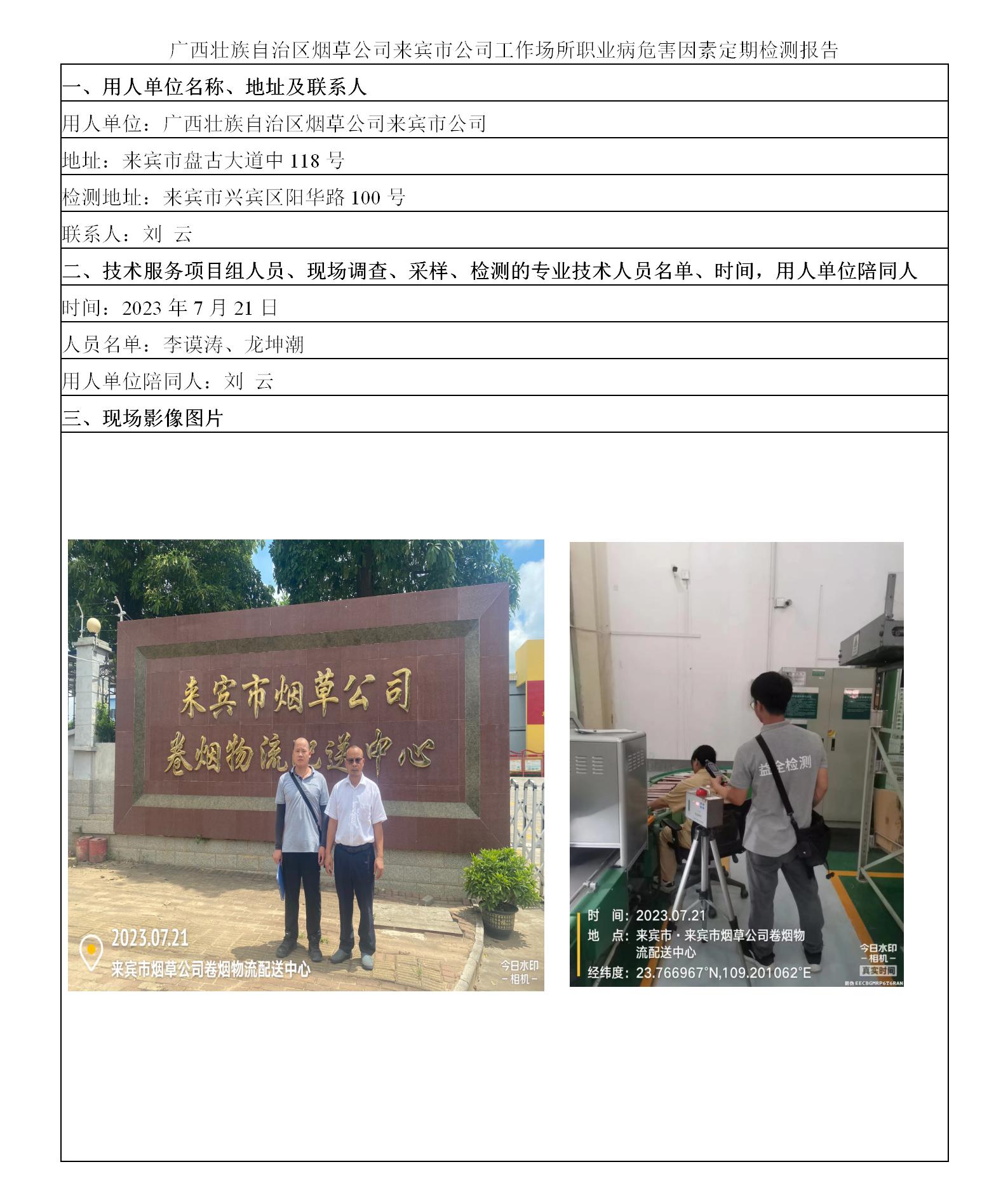 廣西壯族自治區(qū)煙草公司來(lái)賓市公司工作場(chǎng)所職業(yè)病危害因素定期檢測(cè)報(bào)告