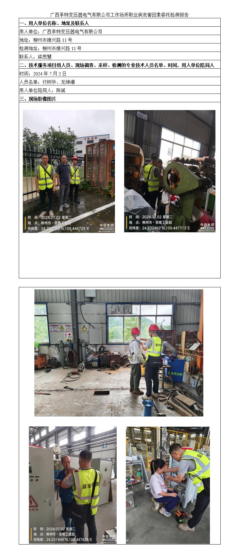 廣西承特變壓器電氣有限公司工作場(chǎng)所職業(yè)病危害因素委托檢測(cè)報(bào)告