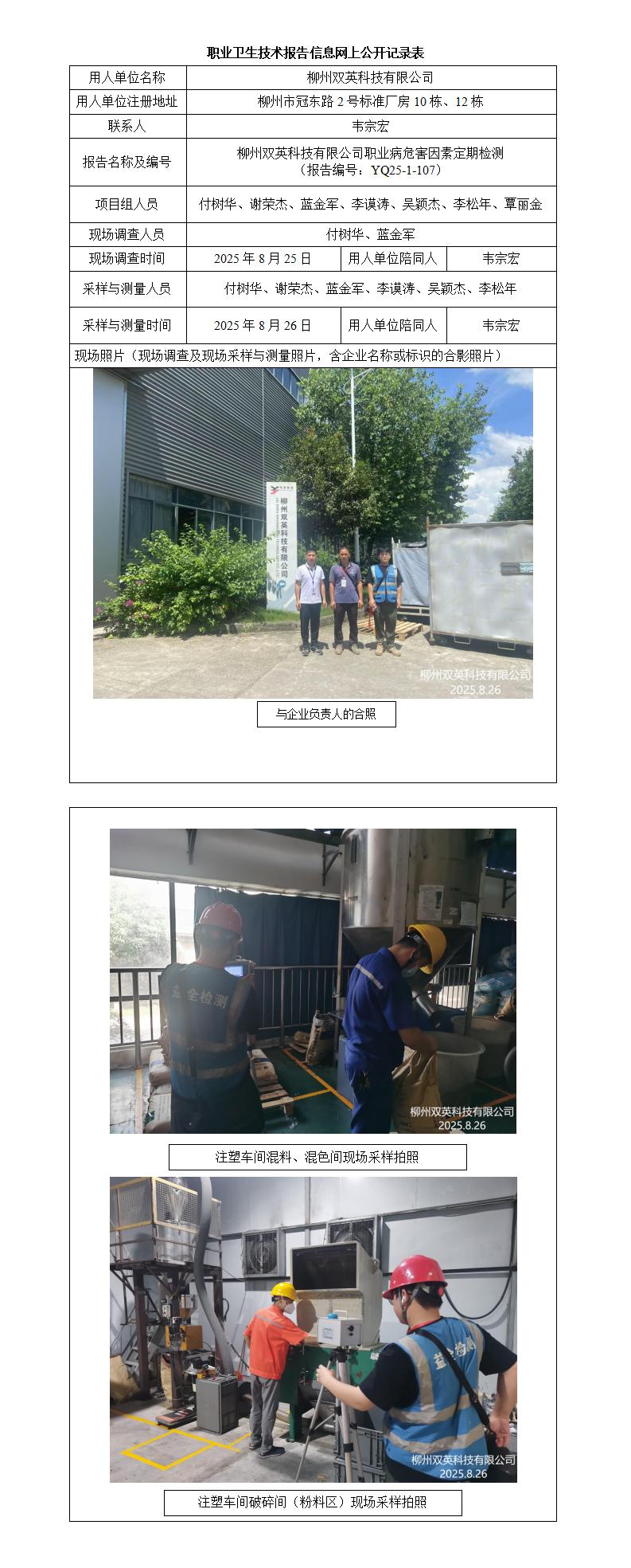 柳州雙英科技有限公司職業(yè)病危害因素定期檢測(cè)