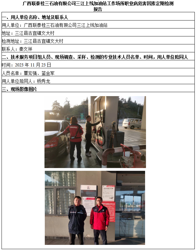 廣西聯(lián)泰桂三石油有限公司三江上線加油站工作場(chǎng)所職業(yè)病危害因素定期檢測(cè)報(bào)告