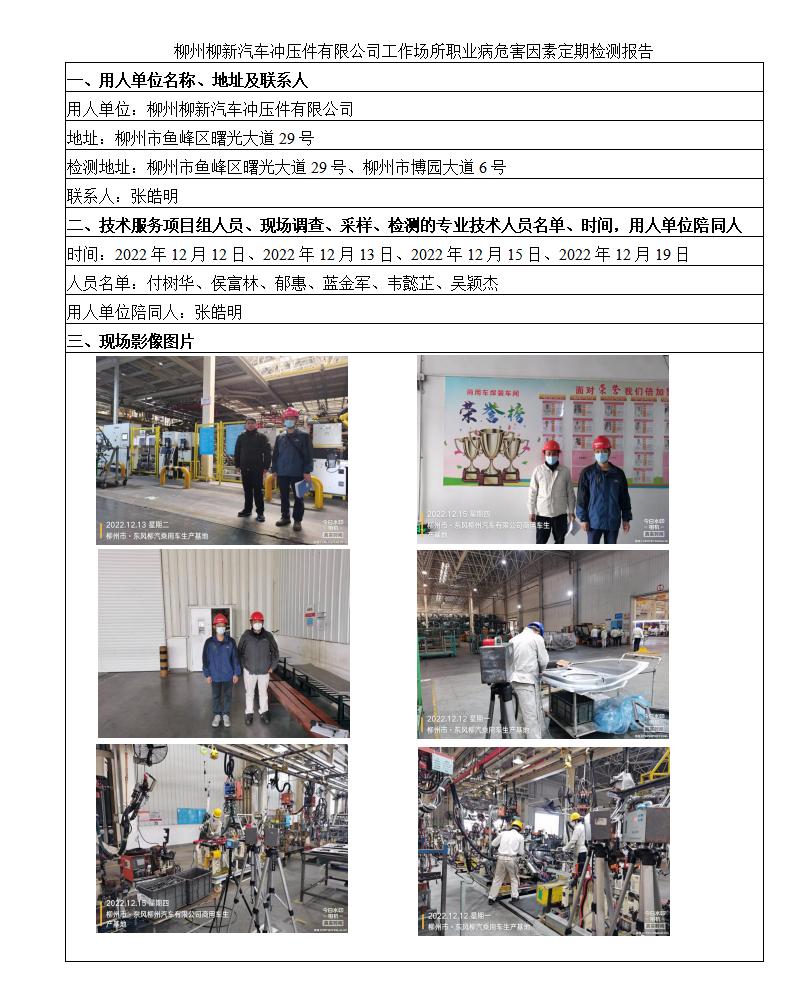 柳州柳新汽車沖壓件有限公司工作場(chǎng)所職業(yè)病危害因素定期檢測(cè)報(bào)告
