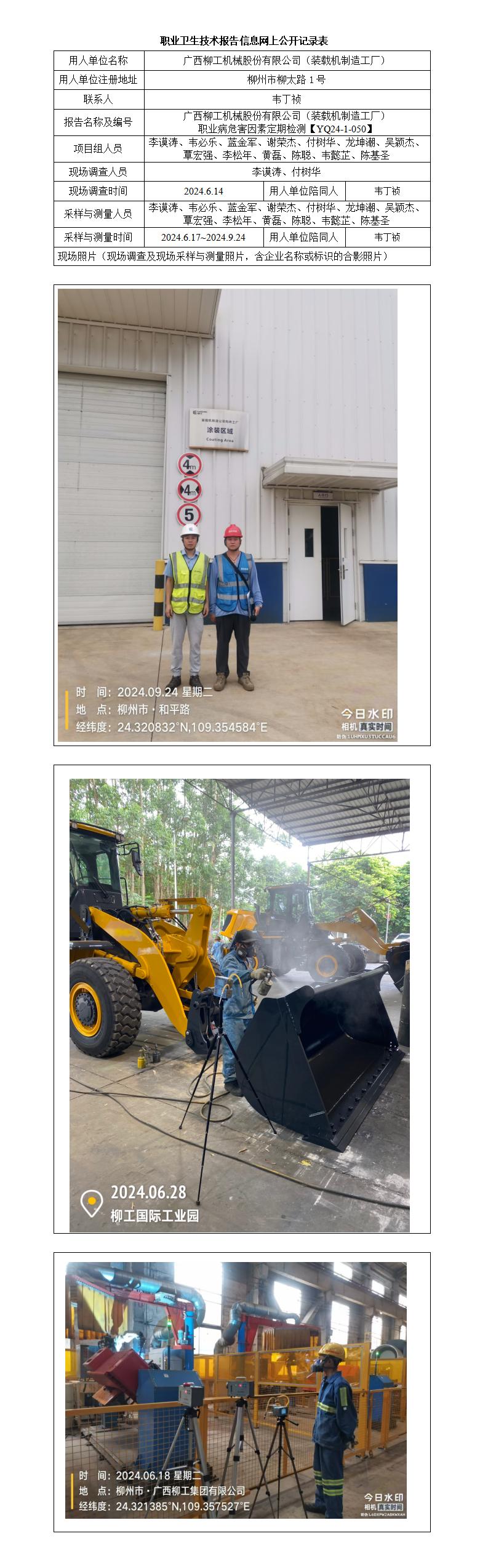 廣西柳工機械股份有限公司(裝載機制造工廠) 職業(yè)病危害因素定期檢測報告