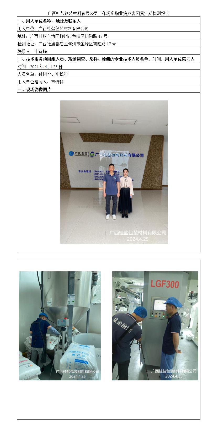 廣西桂鹽包裝材料有限公司工作場所職業(yè)病危害因素定期檢測報(bào)告