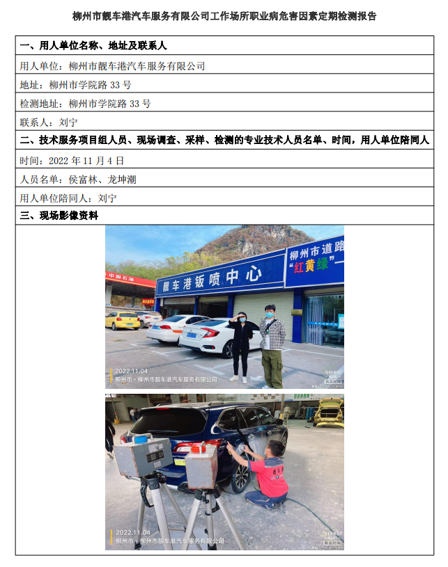 柳州市靚車港汽車服務(wù)有限公司工作場所職業(yè)病危害因素定期檢測報(bào)告