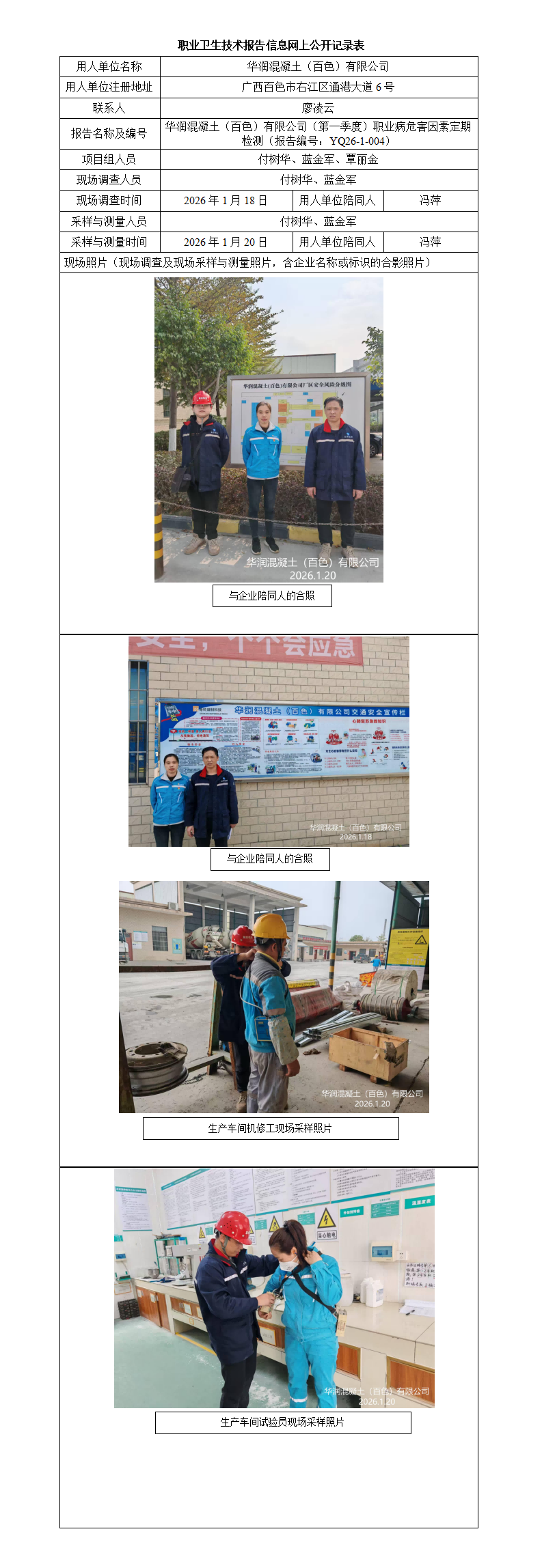 華潤混凝土(百色)有限公司(第一季度)職業(yè)病危害因素定期檢測