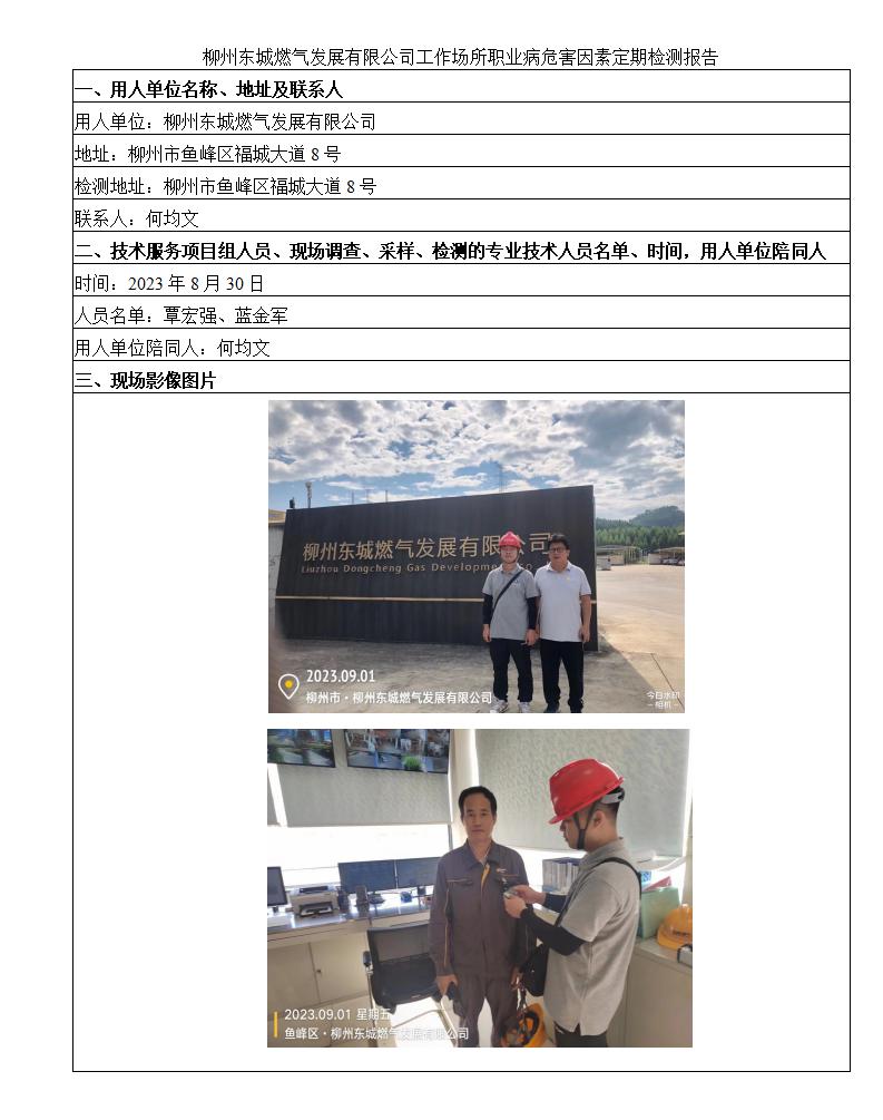 柳州東城燃氣發(fā)展有限公司工作場所職業(yè)病危害因素定期檢測報告