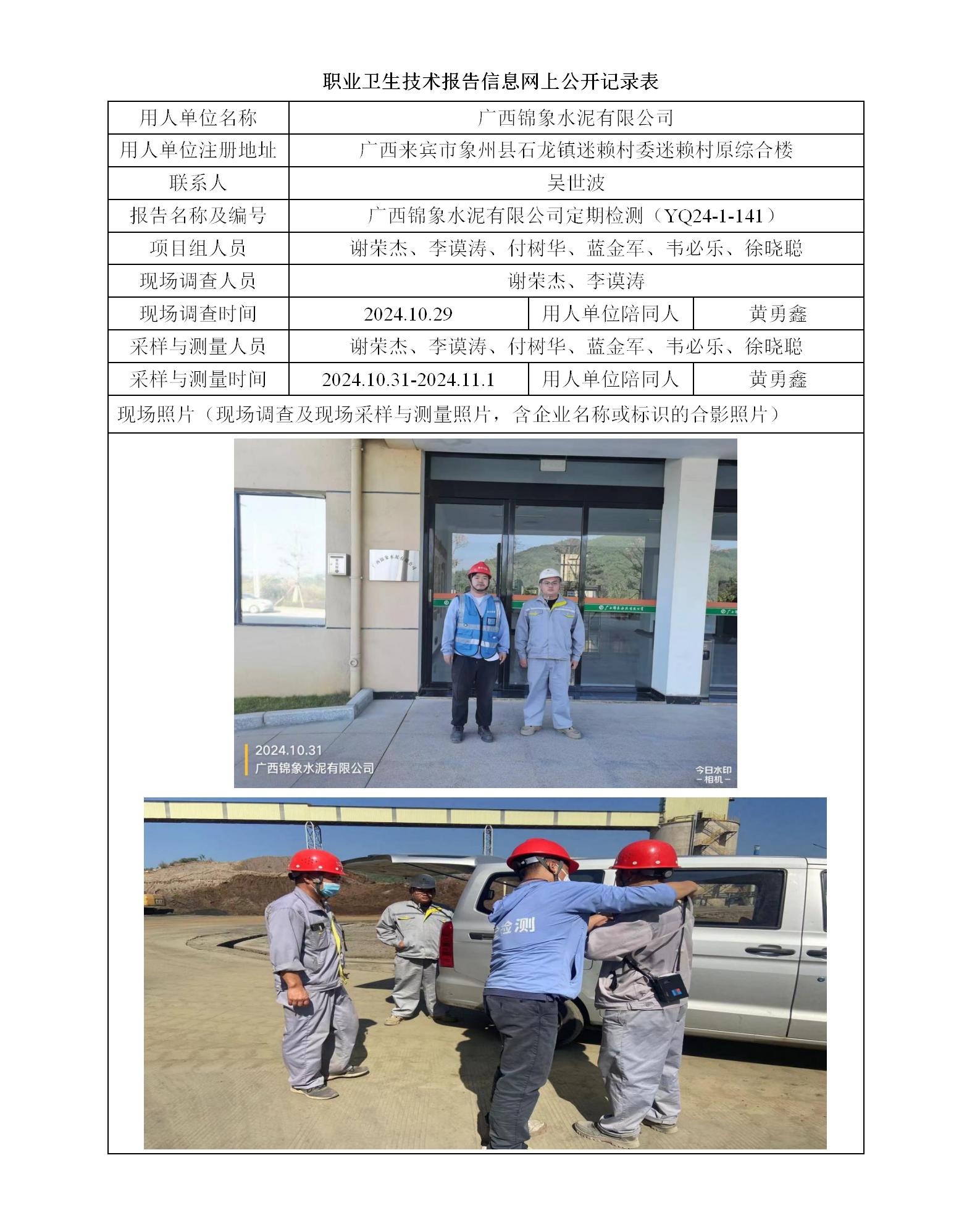 廣西錦象水泥有限公司工作場(chǎng)所職業(yè)病危害因素定期檢測(cè)報(bào)告