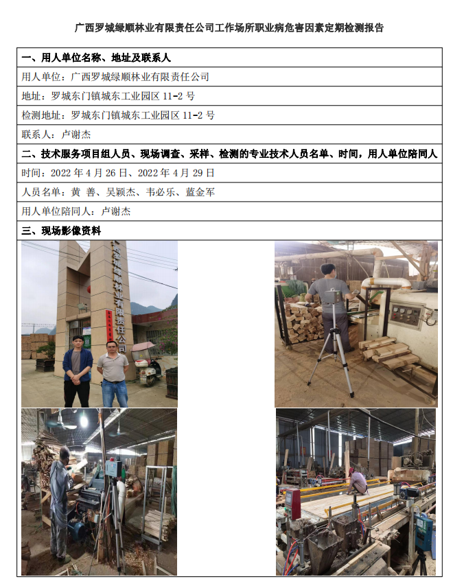廣西羅城綠順林業(yè)有限責(zé)任公司工作場所職業(yè)病危害因素定期檢測報告