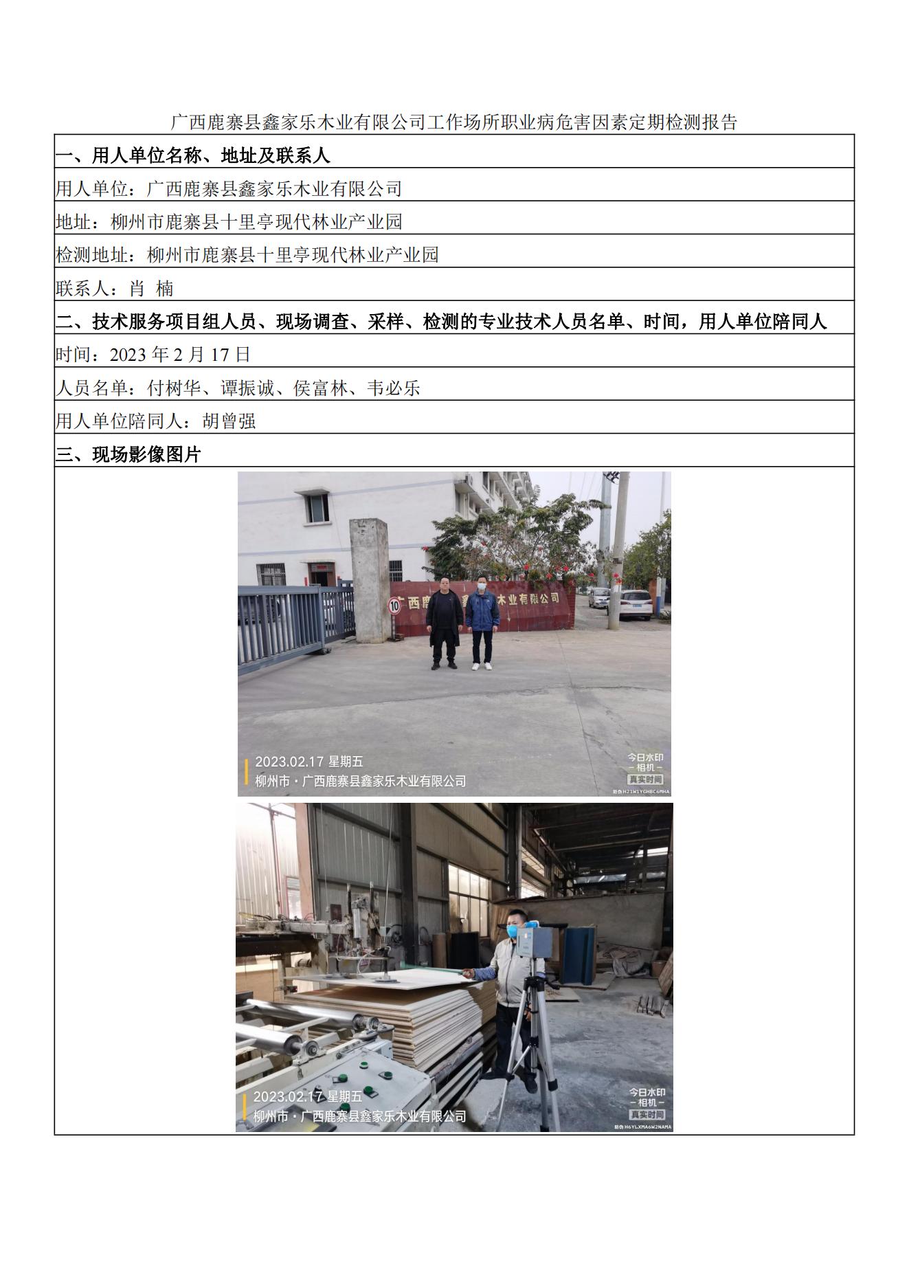 廣西鹿寨縣鑫家樂木業(yè)有限公司工作場(chǎng)所職業(yè)病危害因素定期檢測(cè)報(bào)告