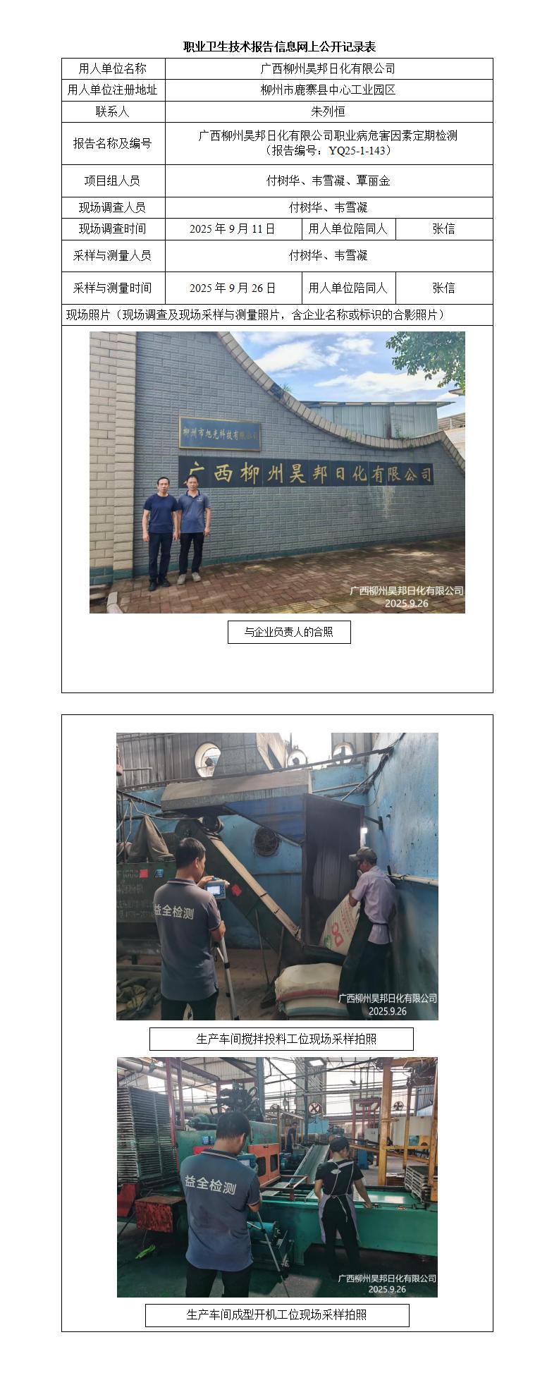 廣西柳州昊邦日化有限公司職業(yè)病危害因素定期檢測(cè)