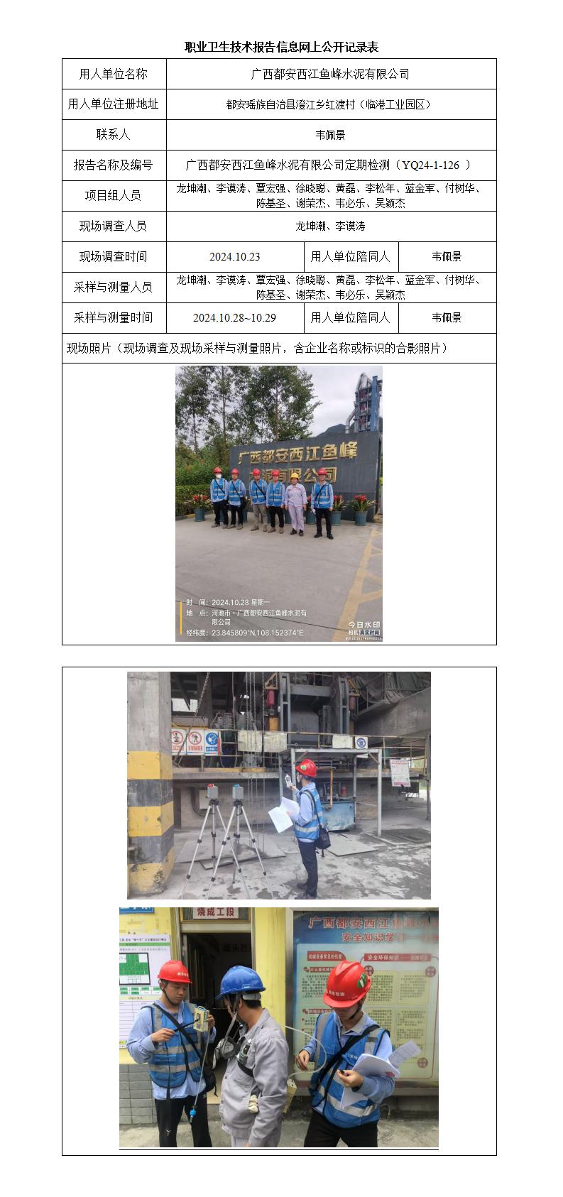 廣西都安西江魚峰水泥有限公司工作場所職業(yè)病危害因素定期檢測報告