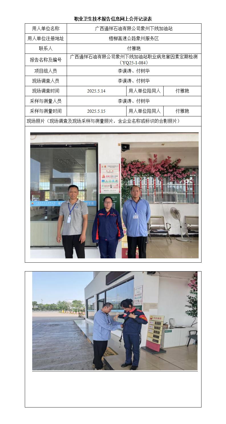 廣西通祥石油有限公司象州下線加油站職業(yè)病危害因素定期檢測(cè)