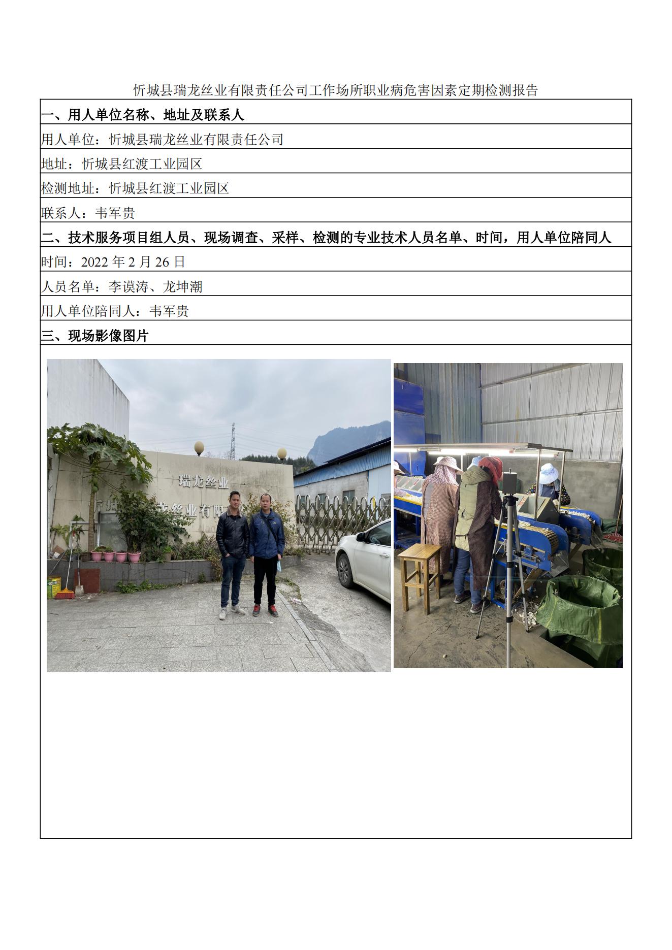 忻城縣瑞龍絲業(yè)有限責(zé)任公司工作場(chǎng)所職業(yè)病危害因素定期檢測(cè)報(bào)告