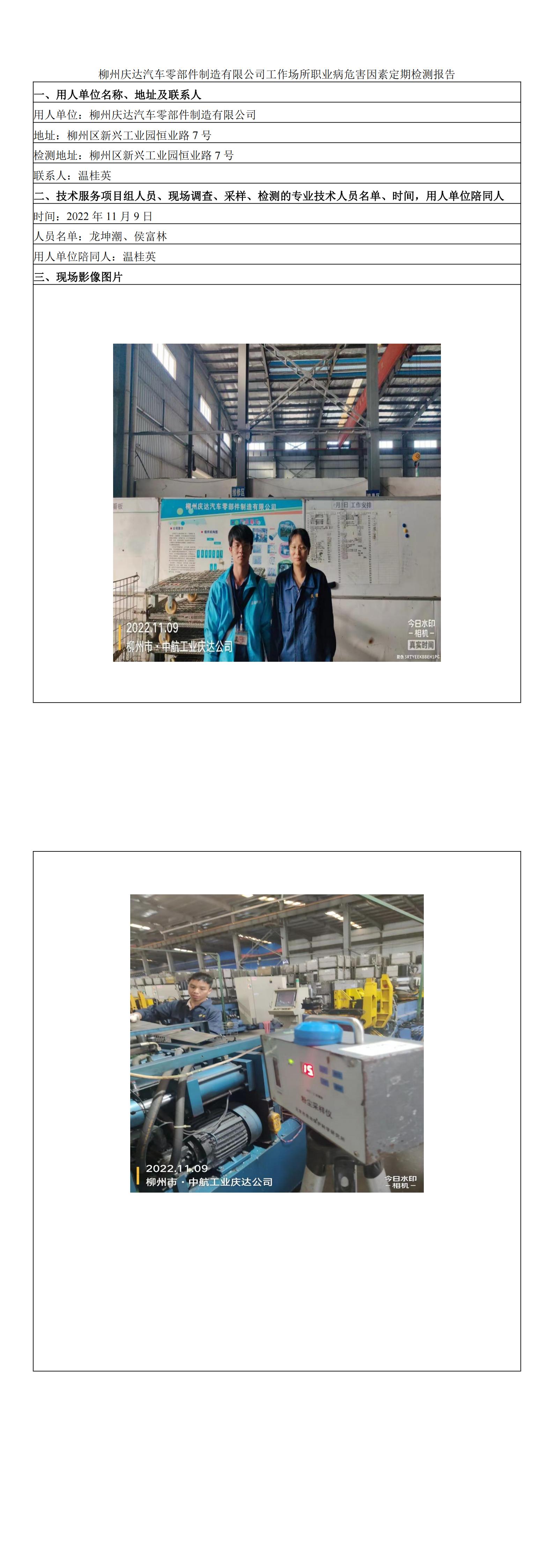 柳州慶達汽車零部件制造有限公司工作場所職業(yè)病危害因素定期檢測報告