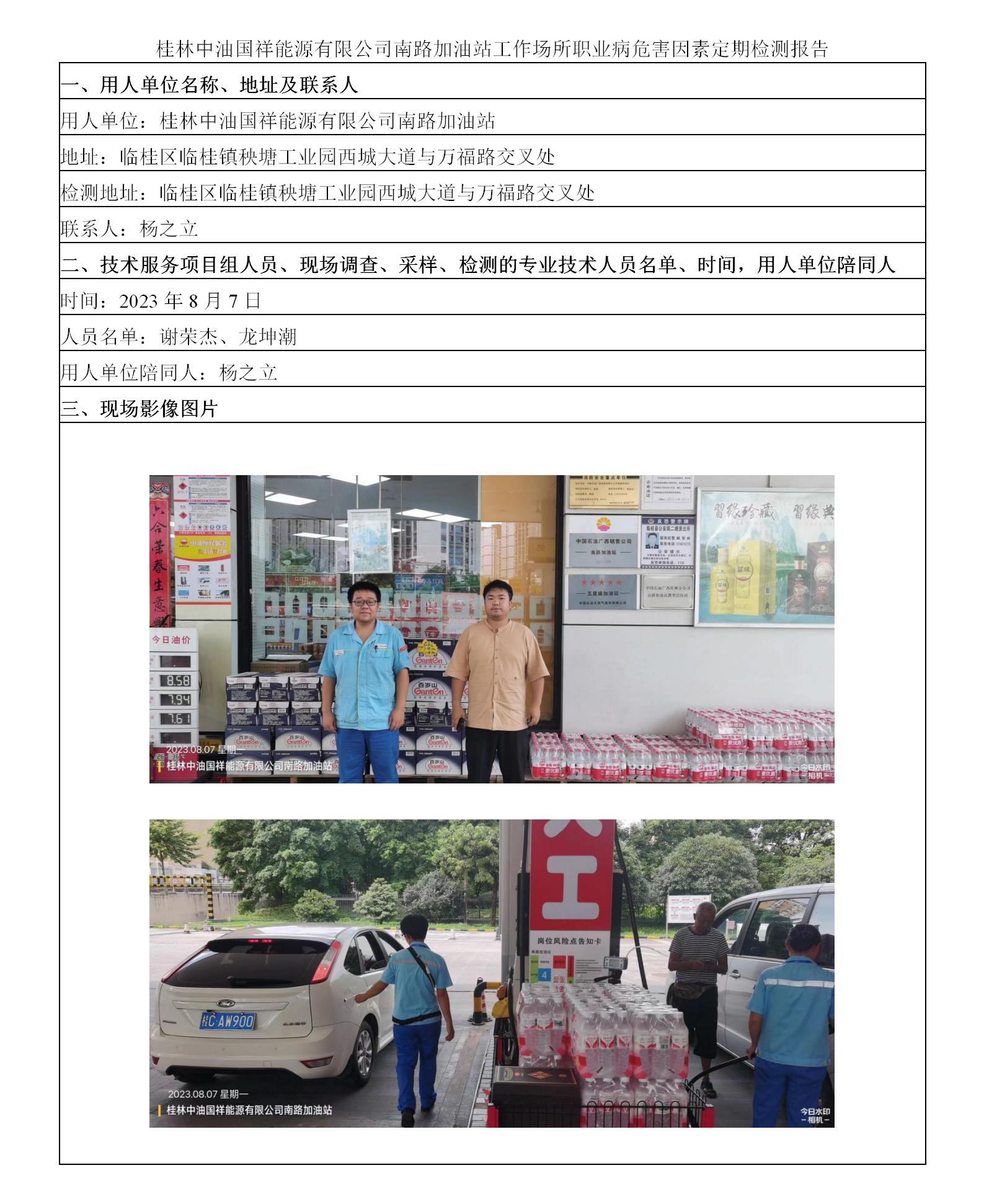 桂林中油國祥能源有限公司南路加油站工作場所職業(yè)病危害因素定期檢測報告