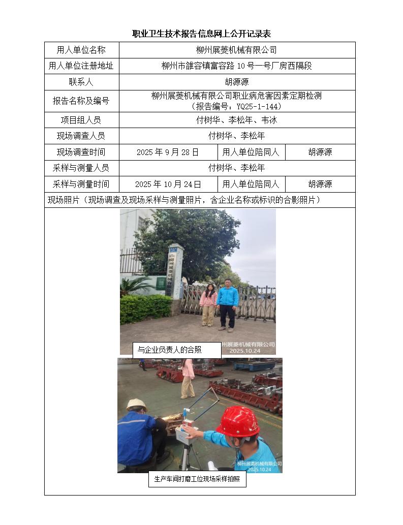 柳州展菱機(jī)械有限公司職業(yè)病危害因素定期檢測