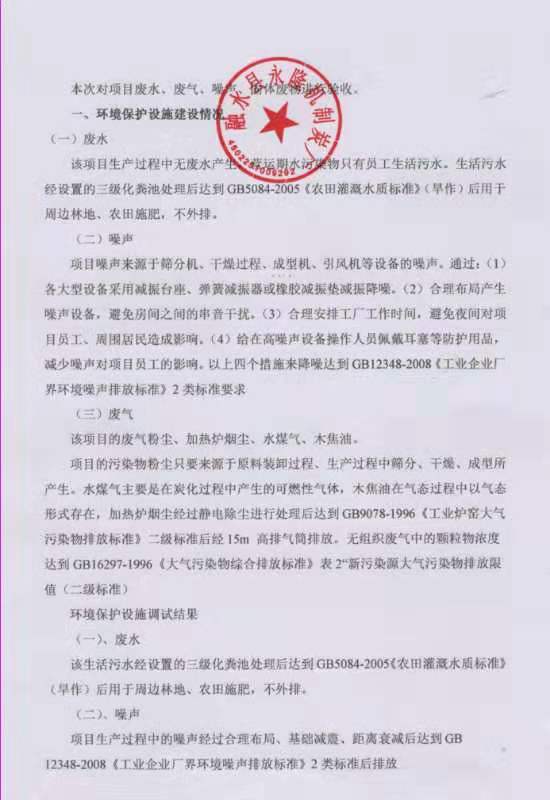 根據(jù)《關(guān)于發(fā)布<建設(shè)項(xiàng)目竣工環(huán)境保護(hù)驗(yàn)收暫行辦法>的公告》(國(guó)環(huán)規(guī)環(huán)評(píng)〔2017〕4號(hào))要求,除按照國(guó)家規(guī)定需要保密的情形外,建設(shè)項(xiàng)目單位應(yīng)依法向社會(huì)公示驗(yàn)收?qǐng)?bào)告。為此,融水縣永樂鎮(zhèn)永隆機(jī)制炭廠將《融水縣永樂鎮(zhèn)永隆機(jī)制炭廠年產(chǎn)機(jī)制炭300t建設(shè)項(xiàng)目(廢氣、廢水、噪聲)竣工環(huán)境保護(hù)驗(yàn)收監(jiān)測(cè)報(bào)告表》及項(xiàng)目驗(yàn)收意見進(jìn)行公示公開,公開內(nèi)容為報(bào)告全文本信息。