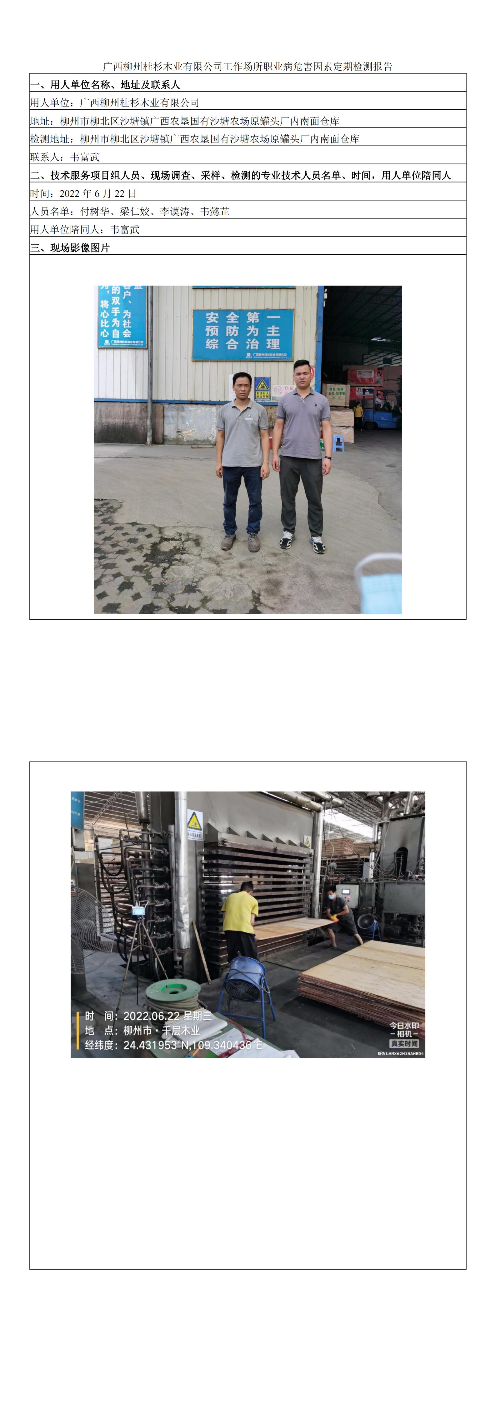 廣西柳州桂杉木業(yè)有限公司工作場所職業(yè)病危害因素定期檢測報告