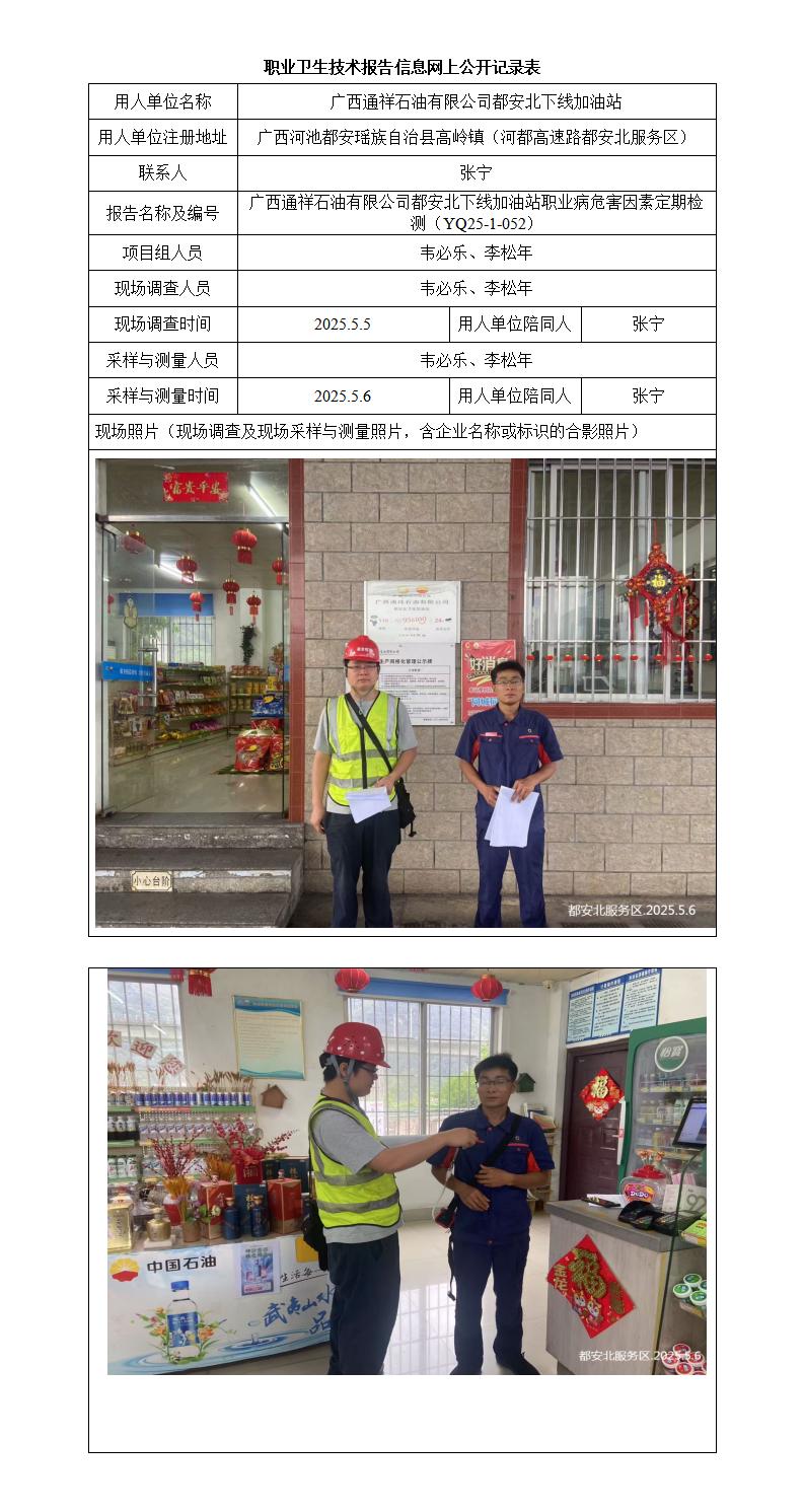 廣西通祥石油有限公司都安北下線加油站職業(yè)病危害因素定期檢測