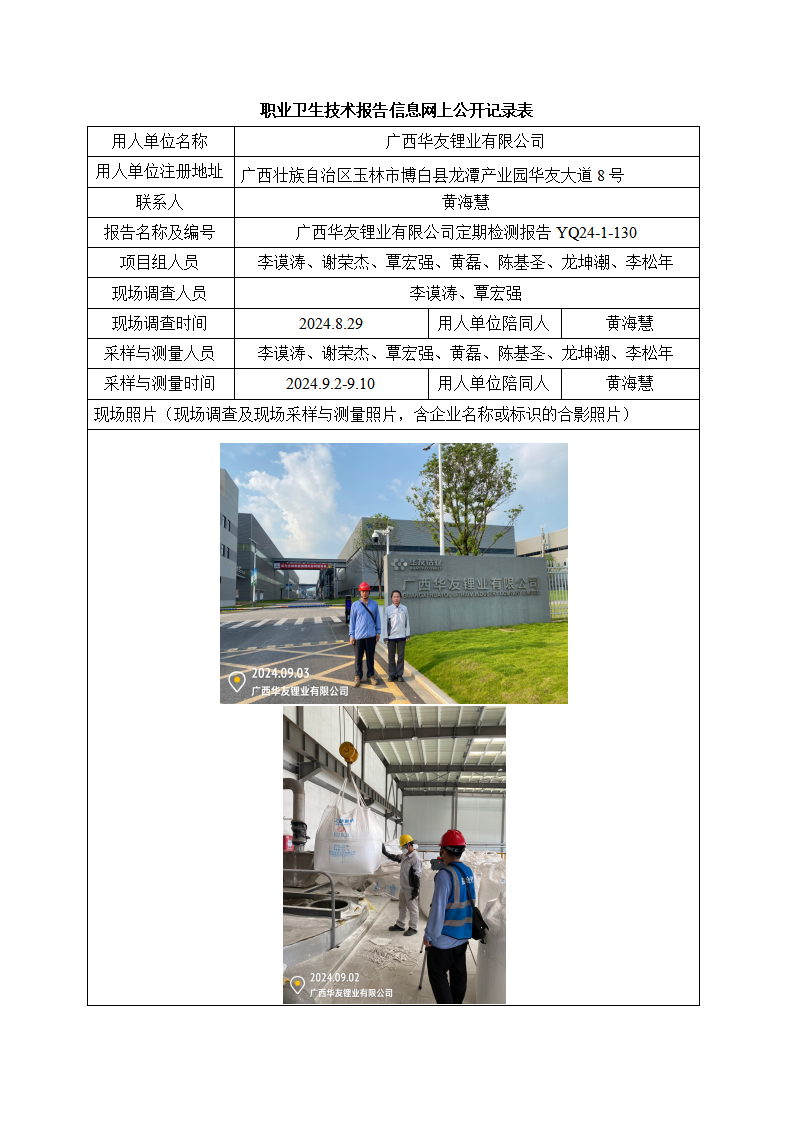 廣西華友鋰業(yè)有限公司定期檢測報告