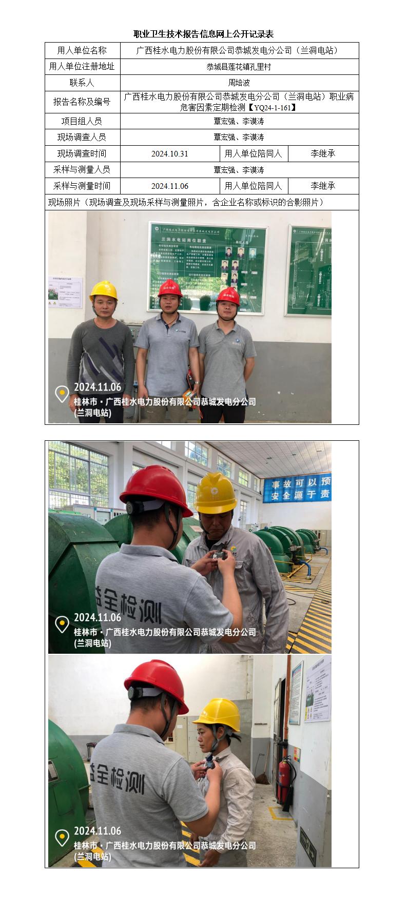廣西桂水電力股份有限公司恭城發(fā)電分公司(蘭洞電站)職業(yè)病危害因素定期檢測報告