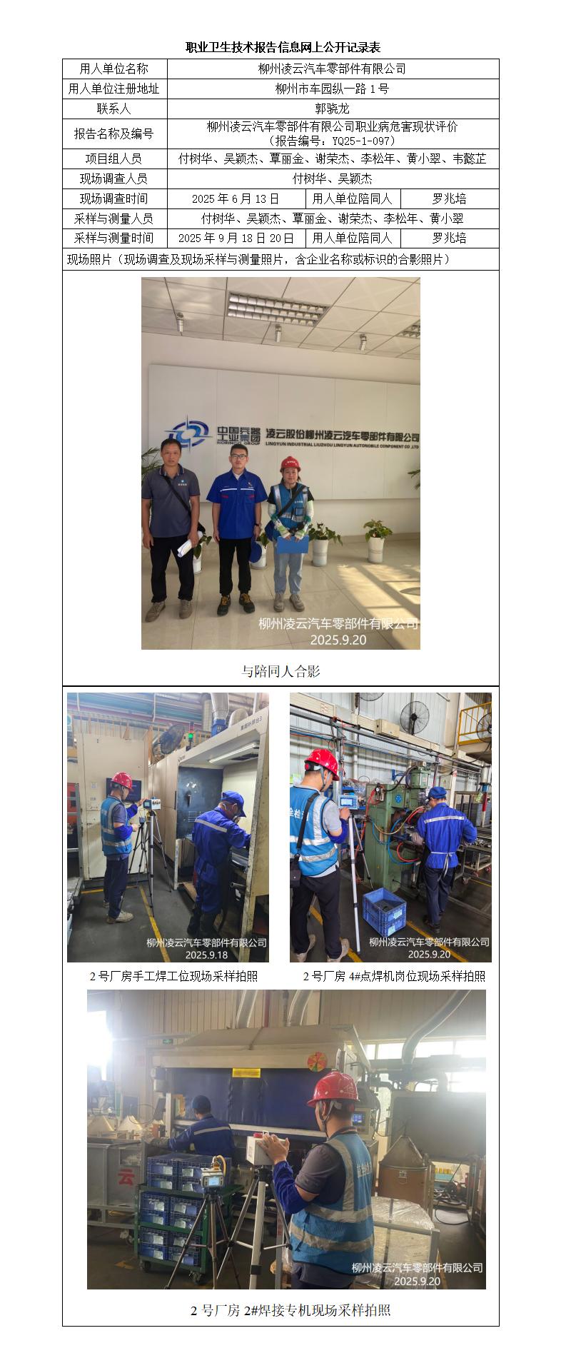 柳州凌云汽車零部件有限公司職業(yè)病危害現(xiàn)狀評價 (報告編號:YQ25-1-097)