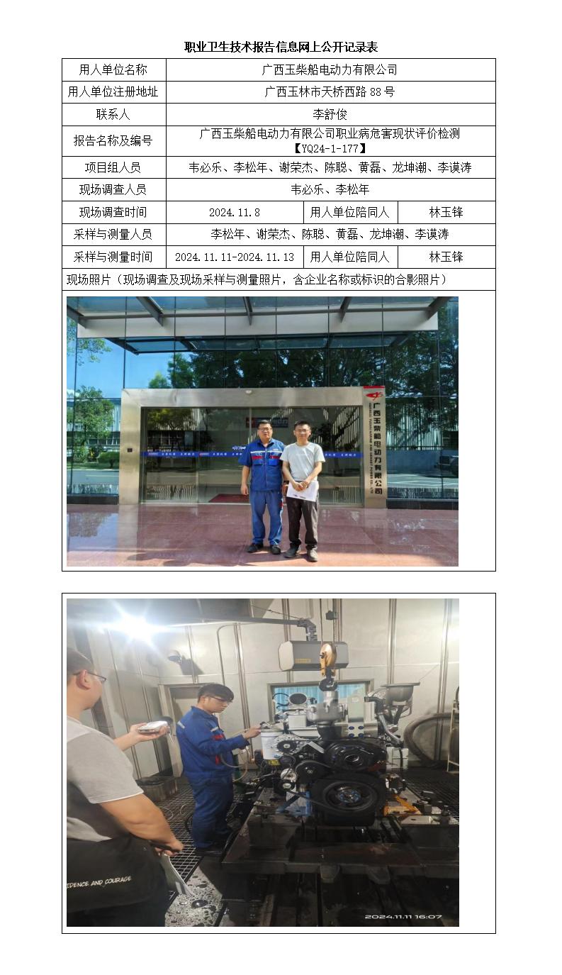 廣西玉柴船電動力有限公司職業(yè)病危害現(xiàn)狀評價檢測報告