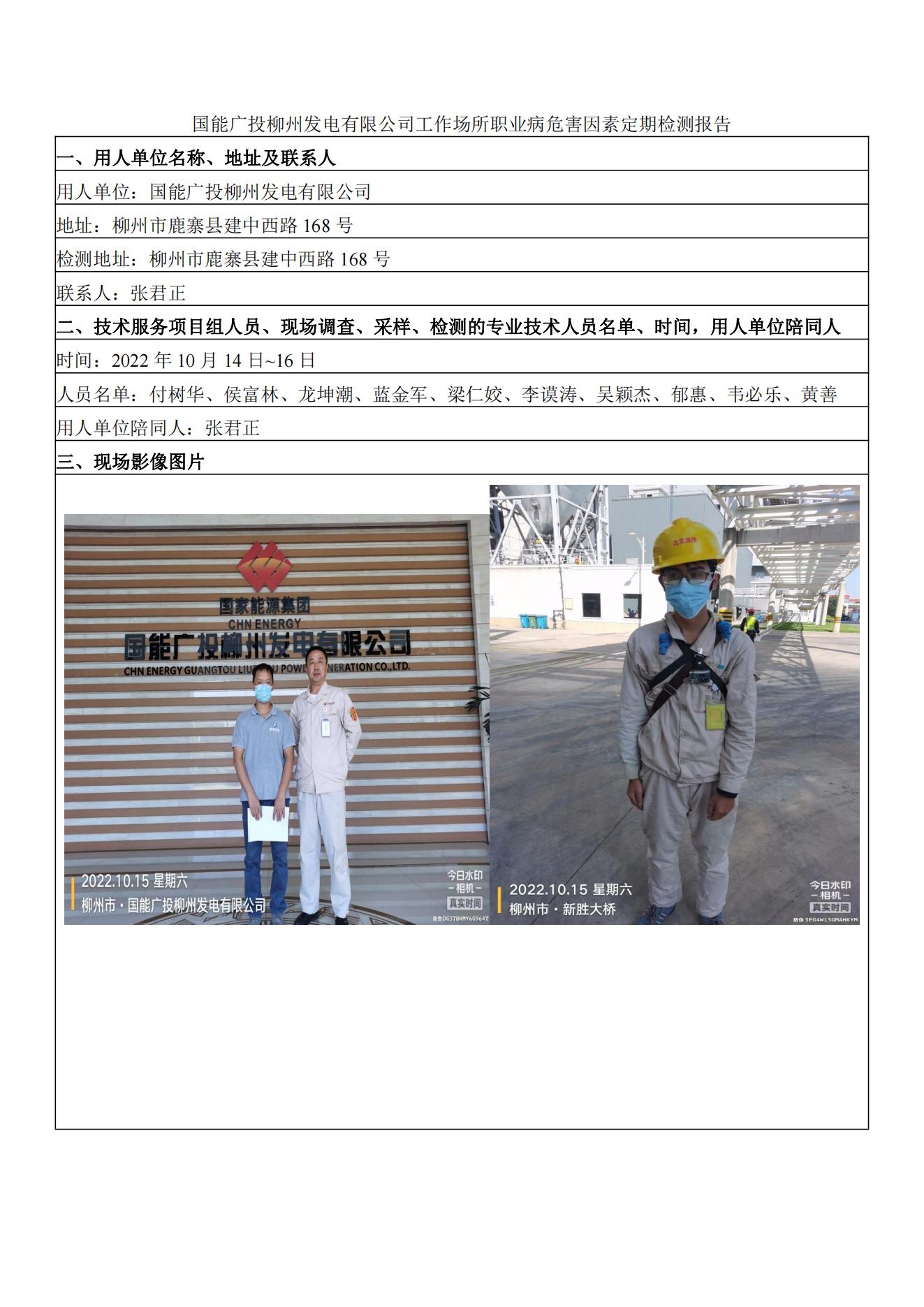 國能廣投柳州發(fā)電有限公司工作場所職業(yè)病危害因素定期檢測報告