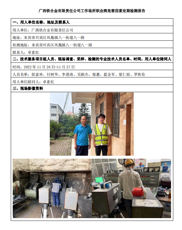 廣西鐵合金有限責(zé)任公司工作場所職業(yè)病危害因素定期檢測報告