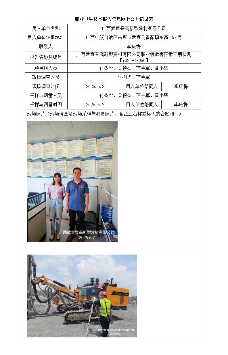 廣西武宣登高新型建材有限公司職業(yè)病危害因素定期檢測報(bào)告