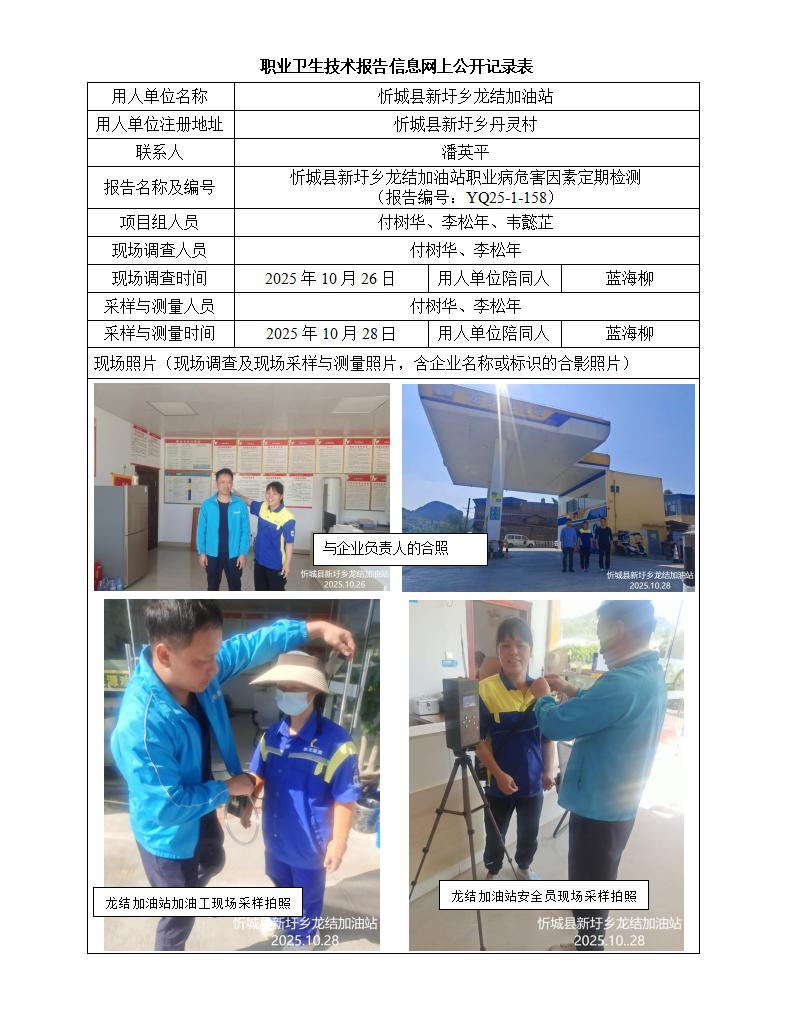 忻城縣新圩鄉(xiāng)龍結(jié)加油站職業(yè)病危害因素定期檢測(cè) (報(bào)告編號(hào):YQ25-1-158)