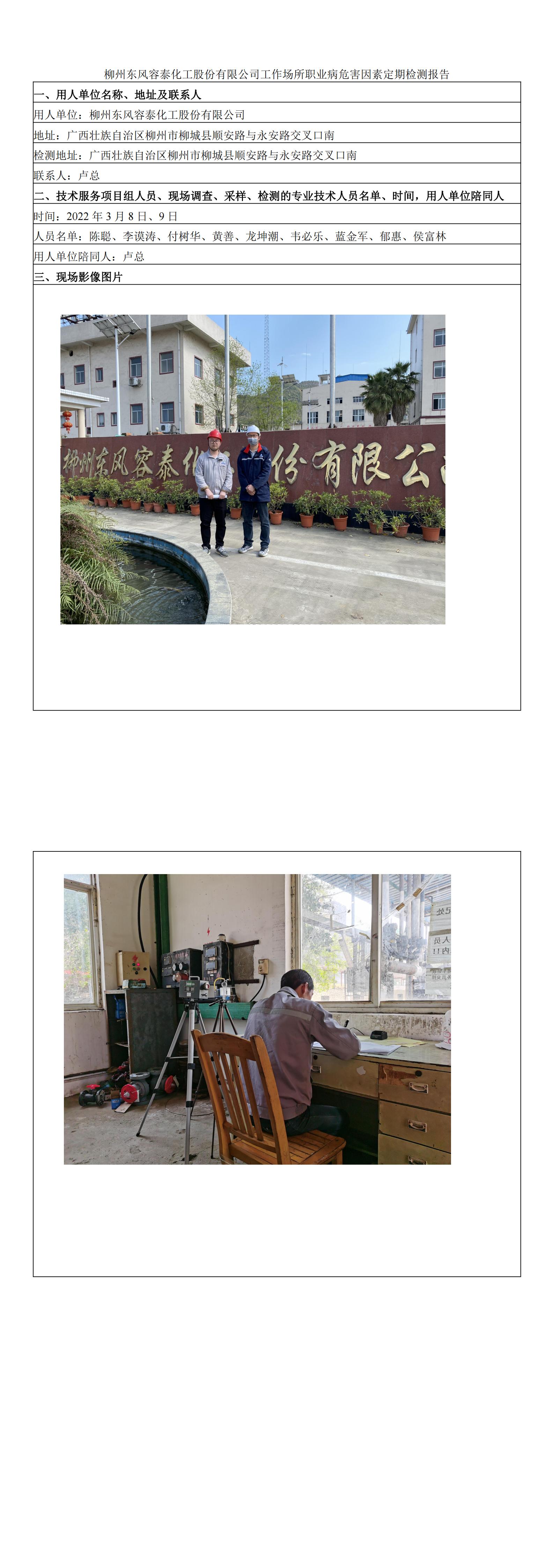 柳州東風(fēng)容泰化工股份有限公司工作場所職業(yè)病危害因素定期檢測報告