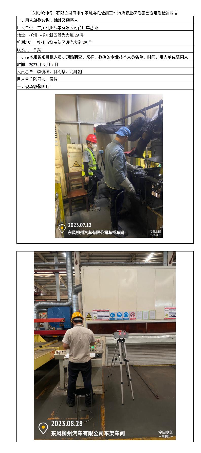 東風(fēng)柳州汽車有限公司商用車基地委托檢測(cè)工作場(chǎng)所職業(yè)病危害因素定期檢測(cè)報(bào)告