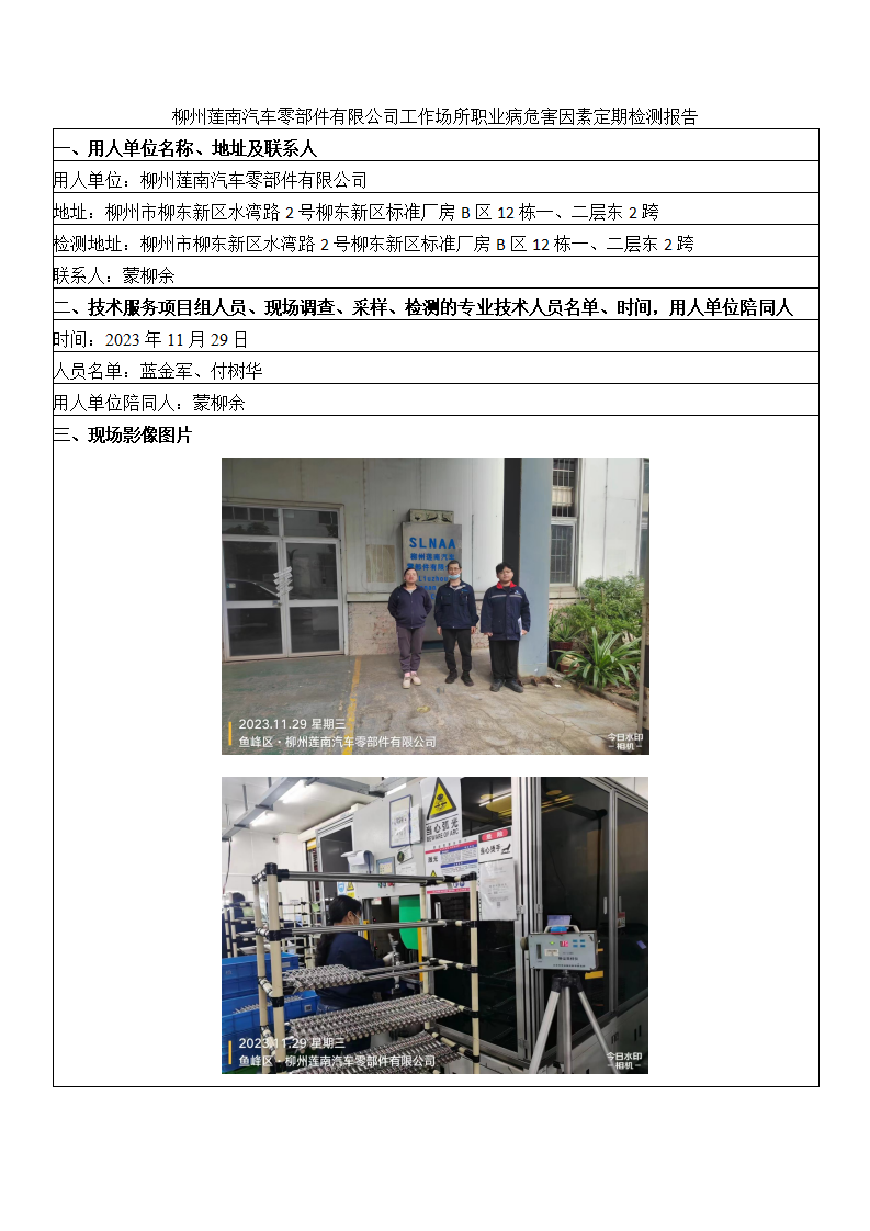 柳州蓮南汽車零部件有限公司工作場所職業(yè)病危害因素定期檢測報告
