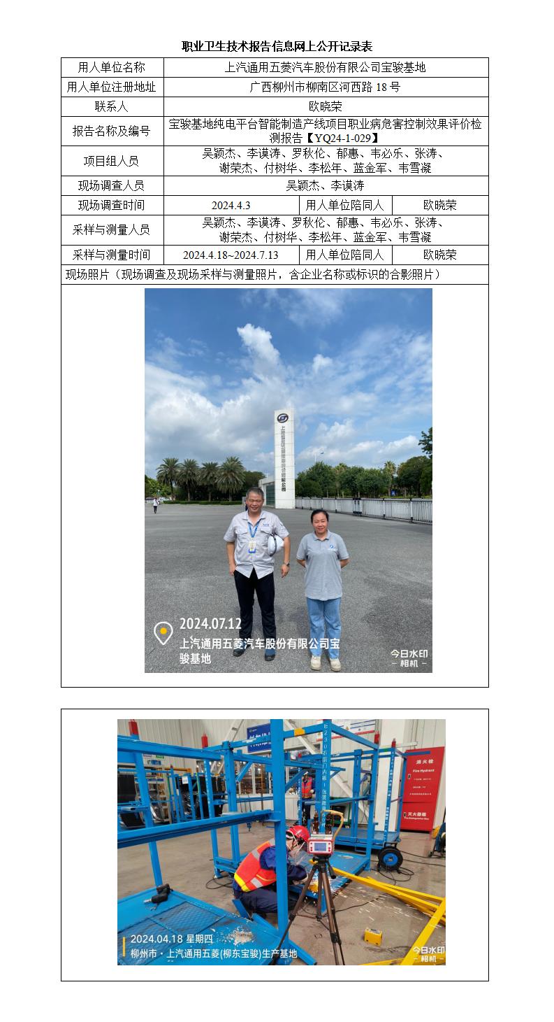 寶駿基地純電平臺智能制造產(chǎn)線項(xiàng)目職業(yè)病危害控制效果評價(jià)檢測報(bào)告