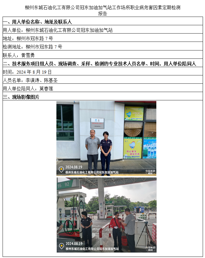 柳州東城石油化工有限公司冠東加油加氣站工作場所職業(yè)病危害因素定期檢測報告