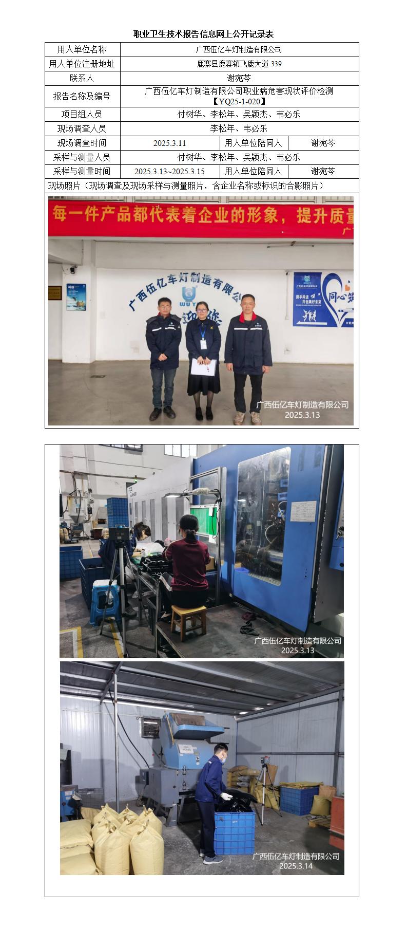 廣西伍億車燈制造有限公司職業(yè)病危害現(xiàn)狀評(píng)價(jià)檢測(cè)報(bào)告