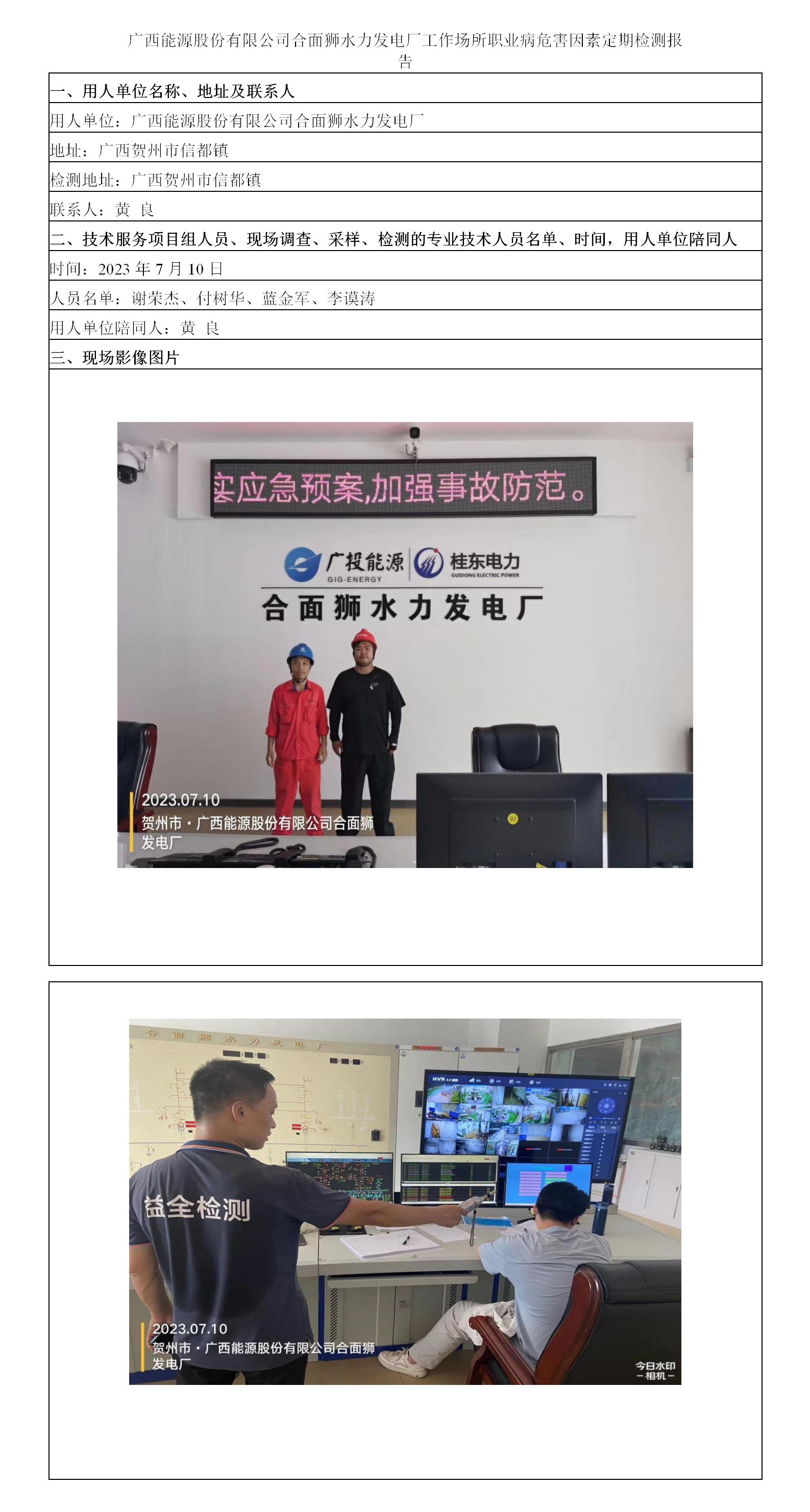 廣西能源股份有限公司合面獅水力發(fā)電廠工作場(chǎng)所職業(yè)病危害因素定期檢測(cè)報(bào)告