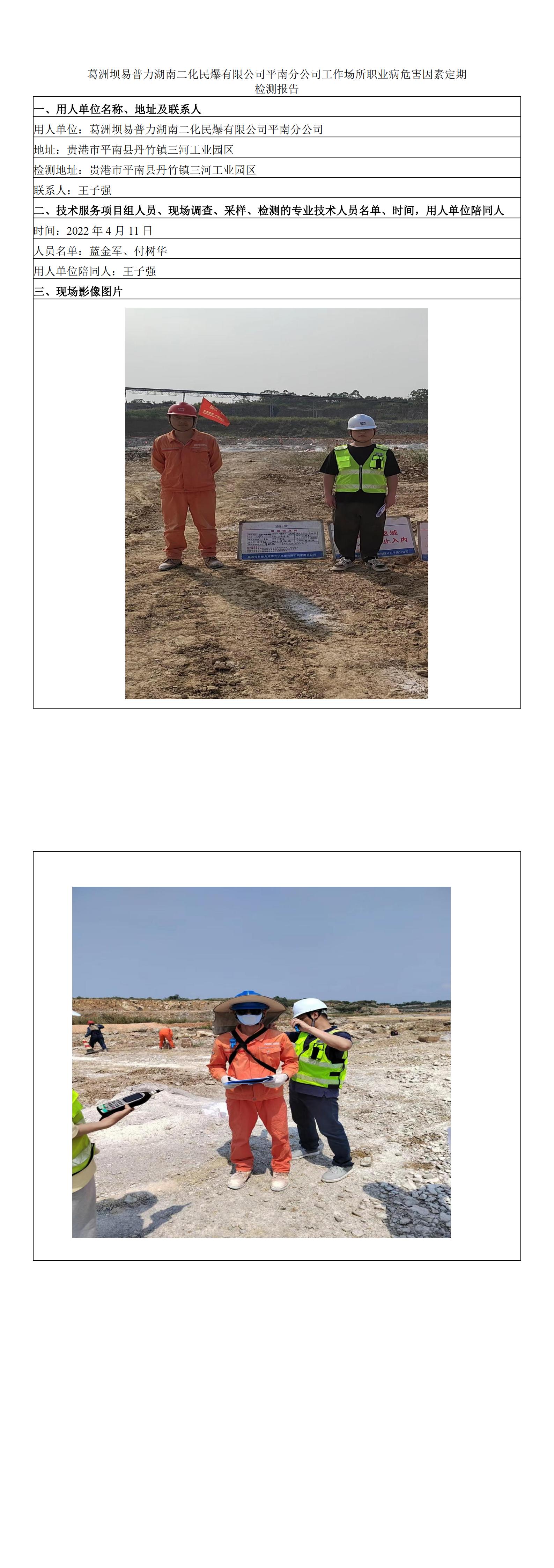 葛洲壩易普力湖南二化民爆有限公司平南分公司工作場所職業(yè)病危害因素定期檢測報告