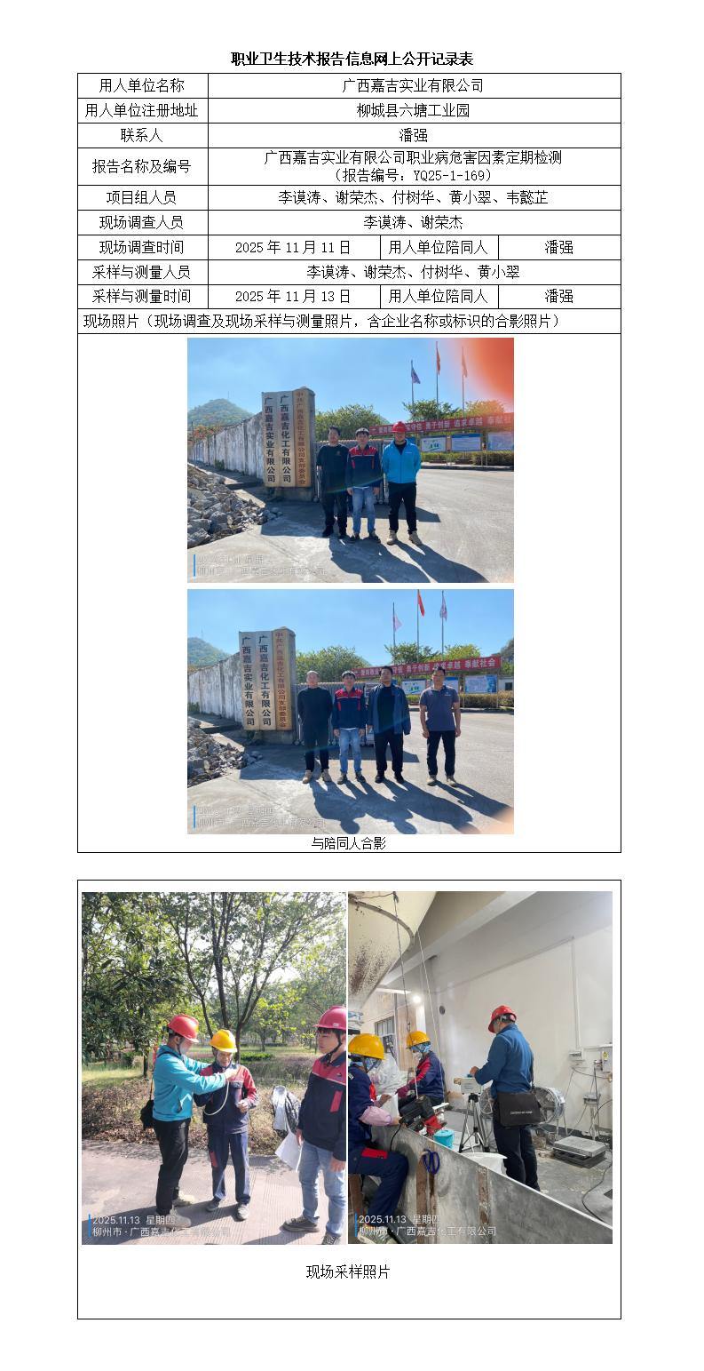 廣西嘉吉實(shí)業(yè)有限公司職業(yè)病危害因素定期檢測 (報(bào)告編號:YQ25-1-169)