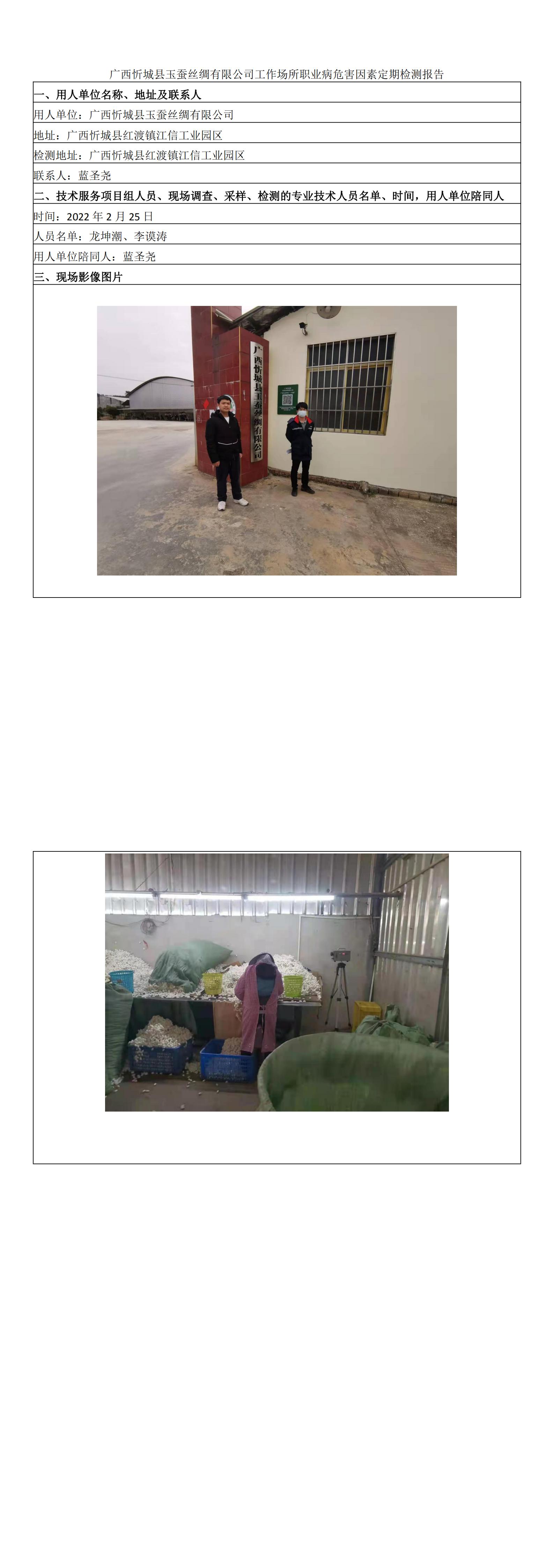廣西忻城縣玉蠶絲綢有限公司工作場所職業(yè)病危害因素定期檢測報告