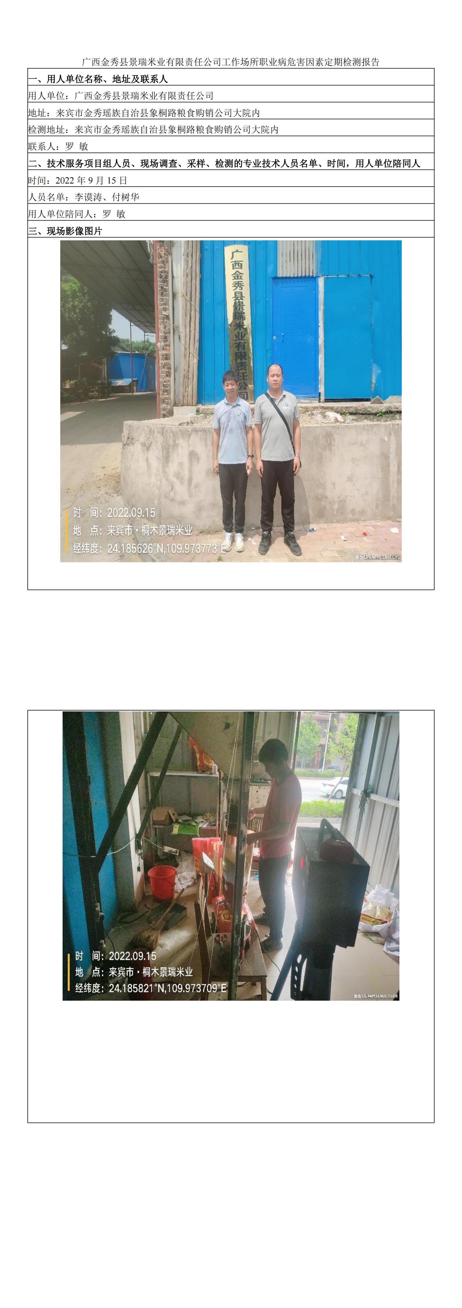 廣西金秀縣景瑞米業(yè)有限責(zé)任公司工作場所職業(yè)病危害因素定期檢測報告