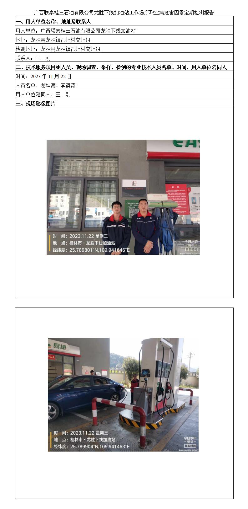 廣西聯(lián)泰桂三石油有限公司龍勝下線加油站工作場(chǎng)所職業(yè)病危害因素定期檢測(cè)報(bào)告