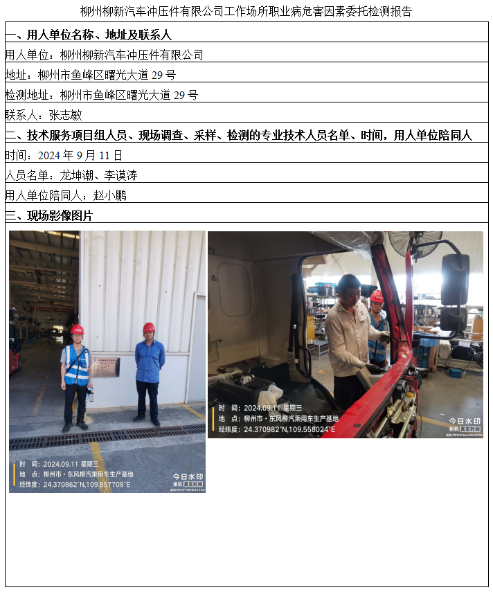 柳州柳新汽車沖壓件有限公司工作場(chǎng)所職業(yè)病危害因素委托檢測(cè)報(bào)告