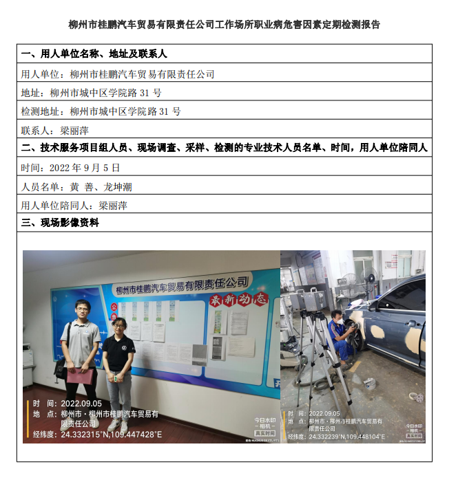 柳州市桂鵬汽車貿(mào)易有限責(zé)任公司工作場(chǎng)所職業(yè)病危害因素定期檢測(cè)報(bào)告