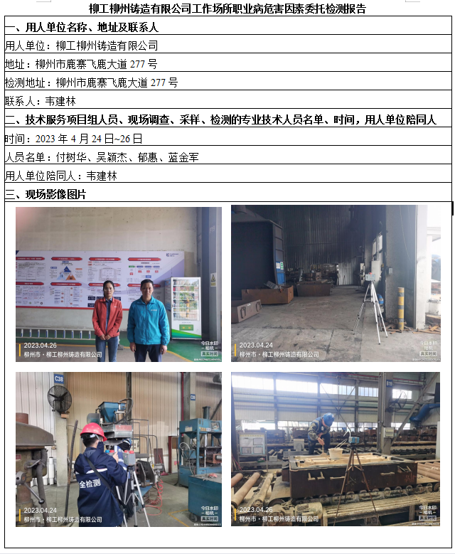 柳工柳州鑄造有限公司工作場所職業(yè)病危害因素委托檢測報告