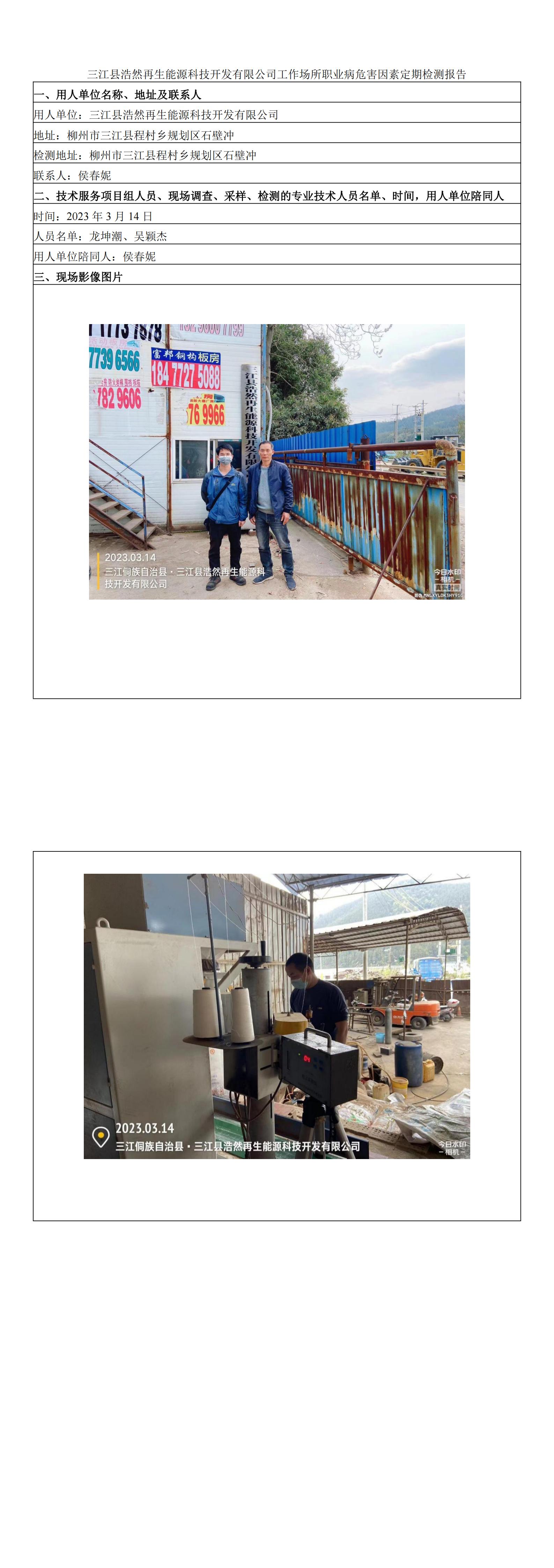 三江縣浩然再生能源科技開發(fā)有限公司工作場所職業(yè)病危害因素定期檢測報(bào)告