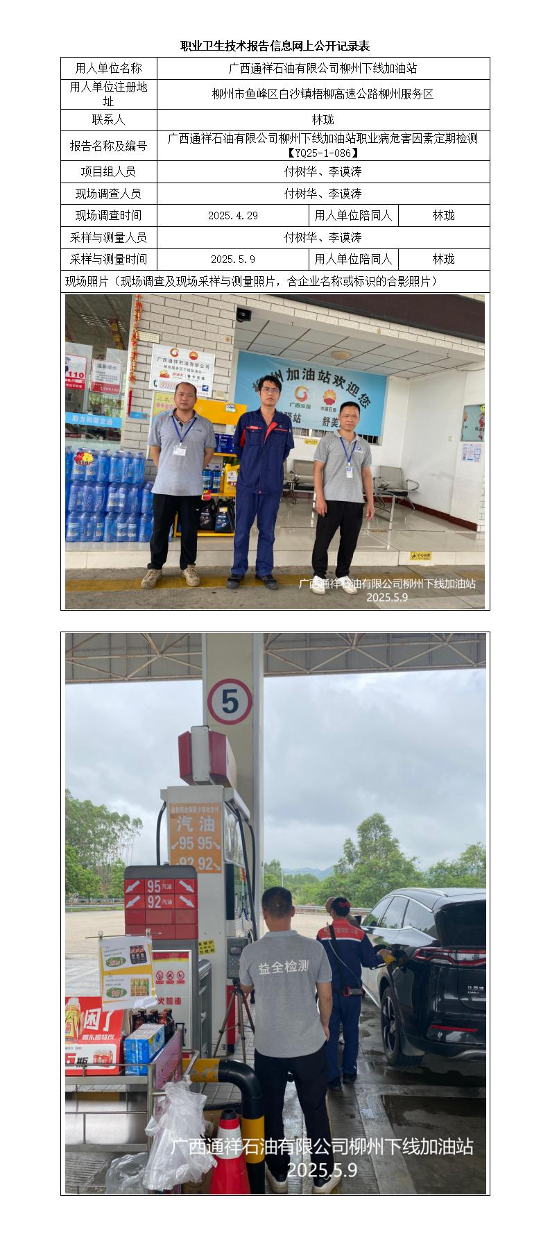 廣西通祥石油有限公司柳州下線加油站職業(yè)病危害因素定期檢測報告