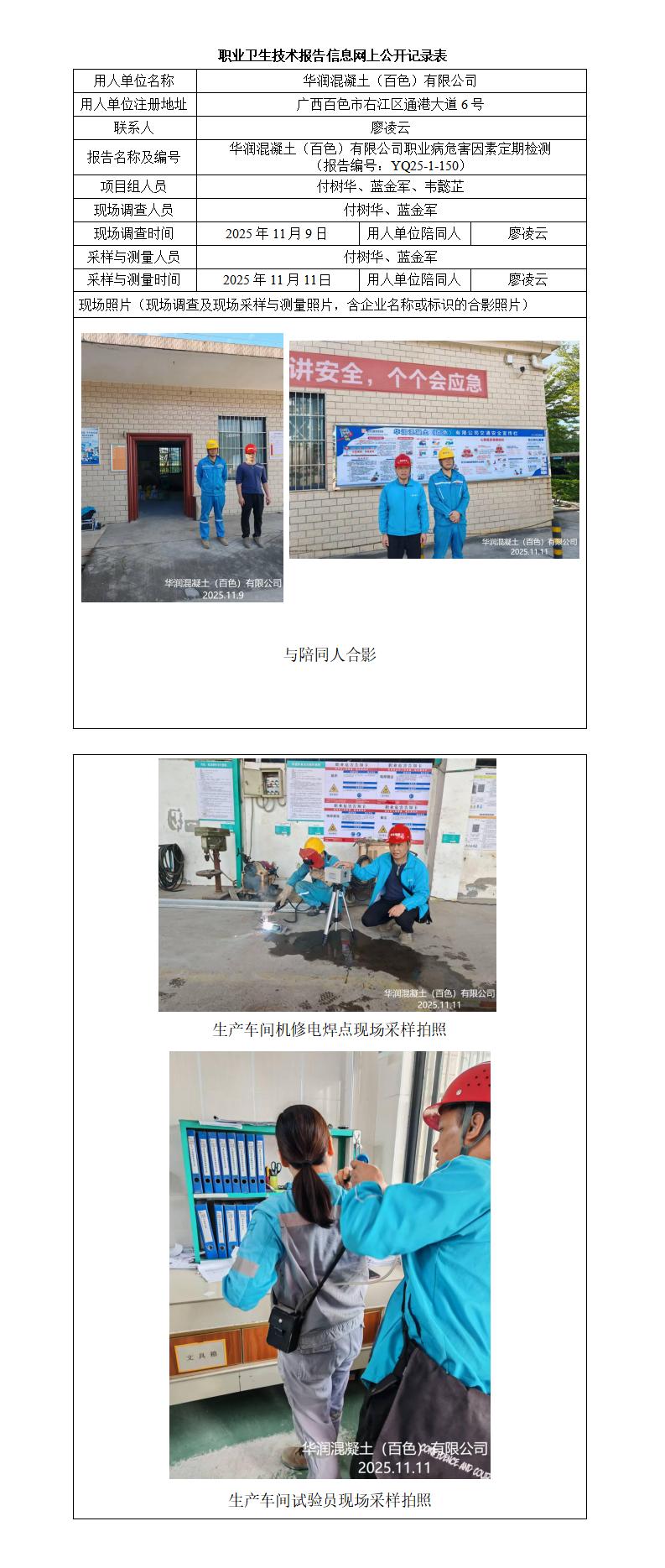 華潤混凝土(百色)有限公司職業(yè)病危害因素定期檢測 (報告編號:YQ25-1-150)